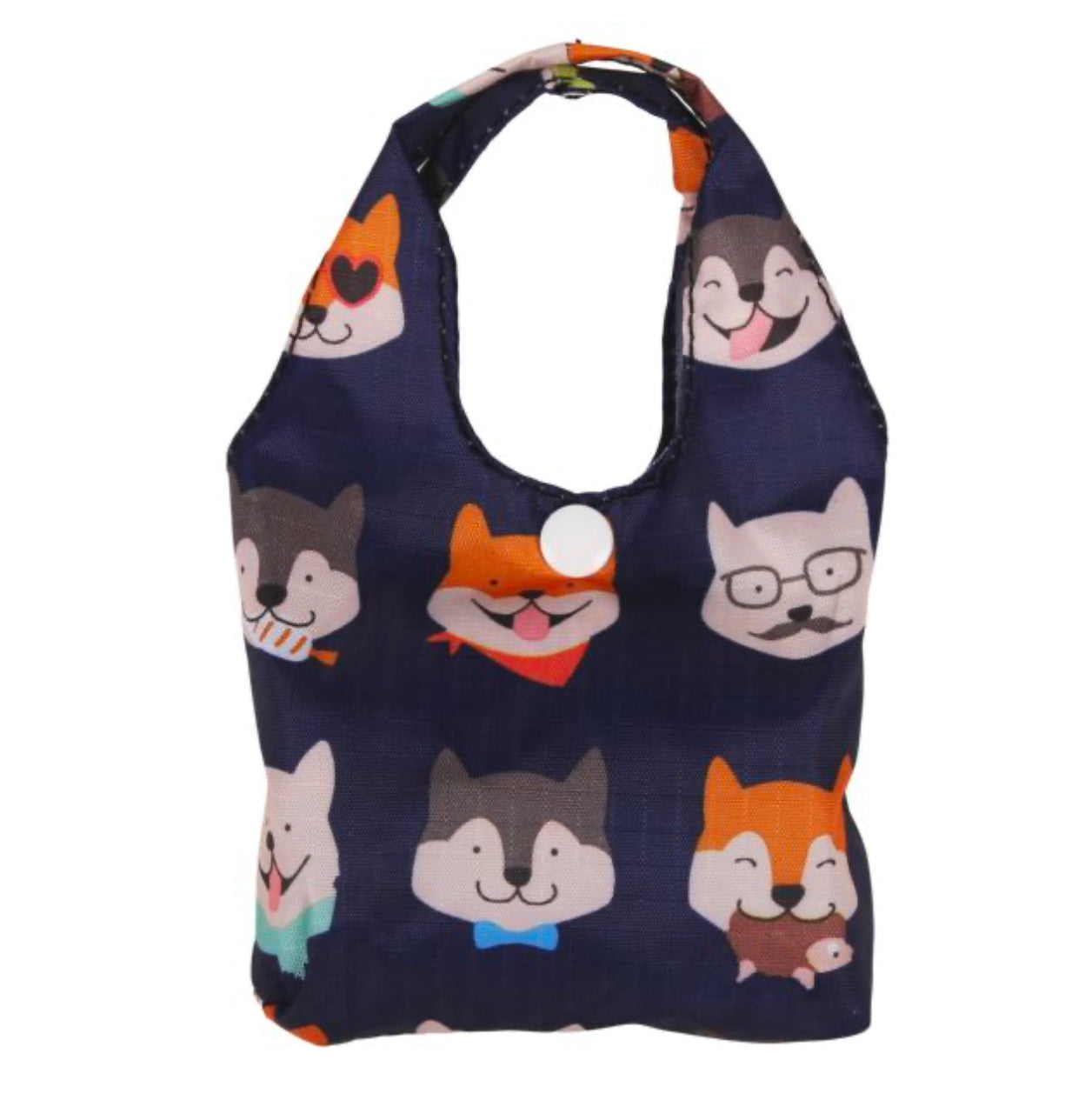 Eco shopping bag, double sided one side large design opposite side smaller print. These fold into themselves so easy to store and carry.