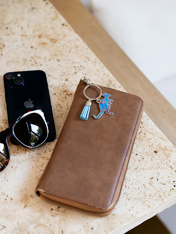 They say good things come in small packages, and this keychain is proof. Crafted with care, each one features uniquely Australian shapes adorned with authentic Aboriginal art "Morning Mist" by talented artist Marlene Harold,. "Our Country" by Justina Willis & "Pilbara Creek " by Allery Sandy. Complete with a sweet little tassel, these keyrings are not only functional but also a heartfelt reminder of the beauty and heritage of this land. Whether it’s for yourself or someone you care about, it’s the perfect lightweight gift to send a little piece of Australia to someone special.