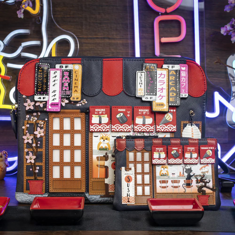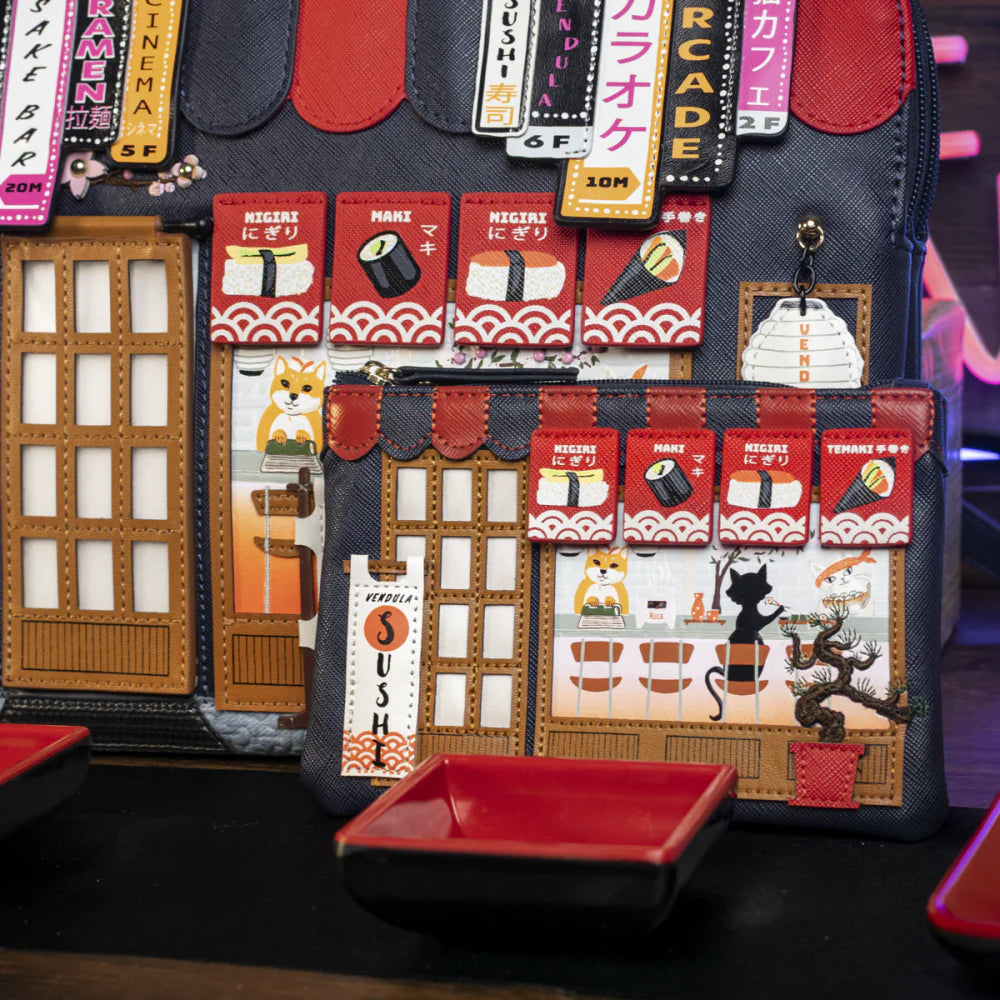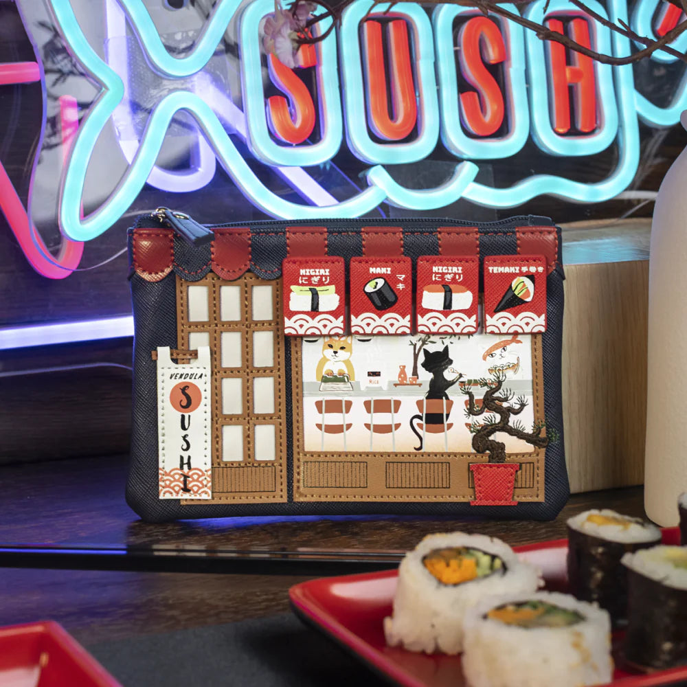 Zip it up with flair! The Vendula Sushi – Blue Edition Zipper Coin Purse is a must-have mini with major personality. Designed in vegan leather and featuring a sushi restaurant-themed artwork with vivid prints and appliqué, it includes a spacious compartment for coins and cards plus a keychain for convenience. Whether linked to your keys or clipped onto your bag, it’s a joyful everyday companion.
