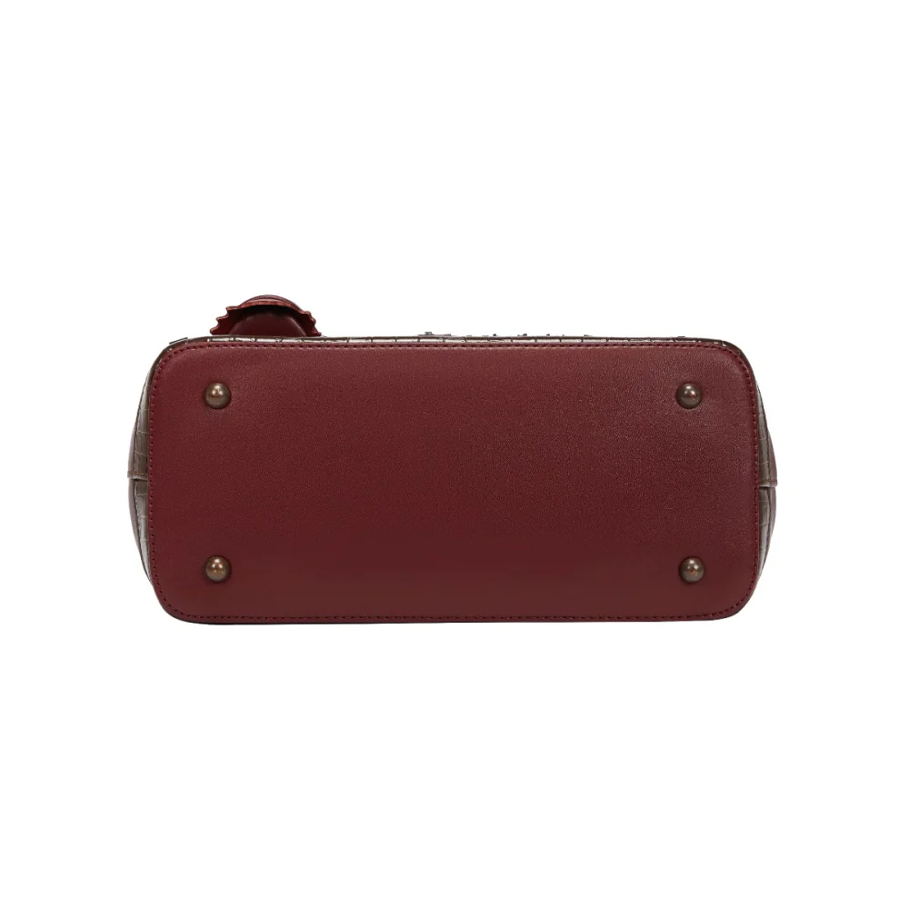 Step inside and feel the magic come alive with the newest addition to Vendula Town! The Mystic Wicks Candle and Wandmakers Grace Bag stuns in a rich burgundy hue with exclusive copper hardware, setting a stylish tone for the autumn/winter season. This vegan leather beauty features a spacious compartment and several pockets for all your essentials, plus a handle and a detachable strap so you can carry it your way. Inspired by artisan candle makers, its shopfront design is adorned with enchanting printed and appliqué elements that will make every outing feel a little more magical. Candle shopping, anyone
