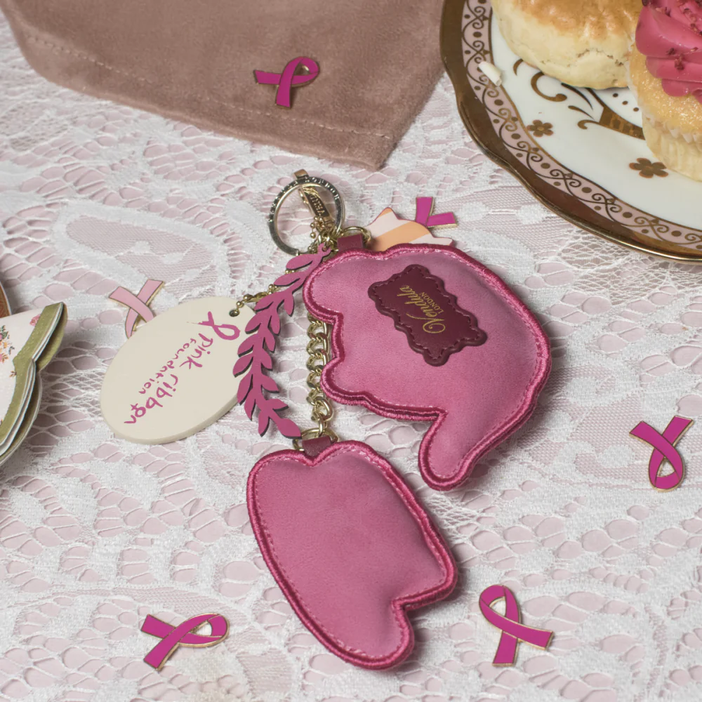 Raise your teacups – the Perfectly Pink Afternoon Tea Bus Key Charm has arrived! Crafted from vegan leather and made up of two charms – a teapot and a teacup – this sweet accessory can be clipped onto your bag or used as a keyring. With delicate rose stitching and varying shades of pink, it complements any piece from the Pink Ribbon range. Whether you’re sprucing up an older favourite or adding flair to a new handbag, this key charm is a delightful way to carry a little joy wherever you go. Cheers to looking fabulous while supporting a meaningful cause! This October, we’re proud to support Breast Cancer Awareness Month with our Pink Ribbon Foundation collection. Each cheerful accessory helps raise awareness and funds for this vital cause. Up to 8% from every sale goes to the Pink Ribbon Foundation (Charity No. 1080839), supporting those affected by breast cancer and promoting early detection. Check regularly. Wear your ribbon with pride