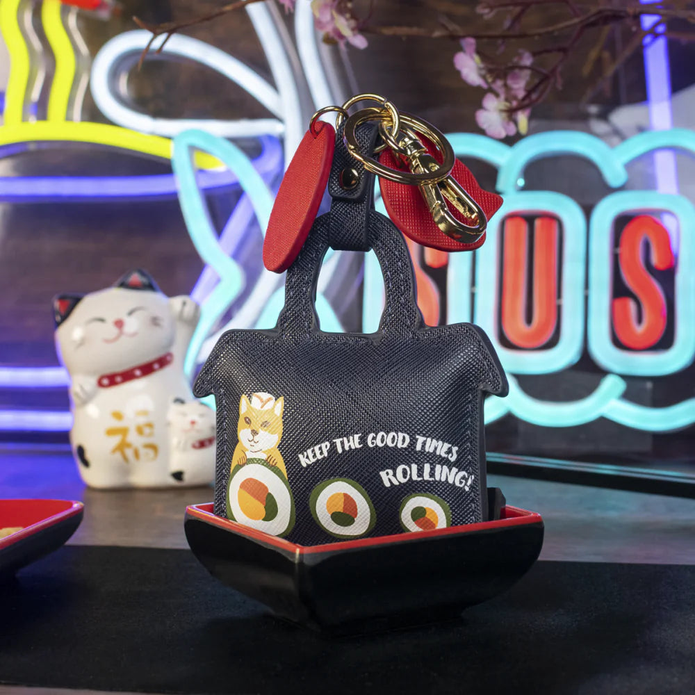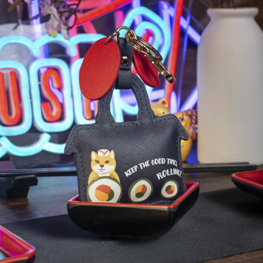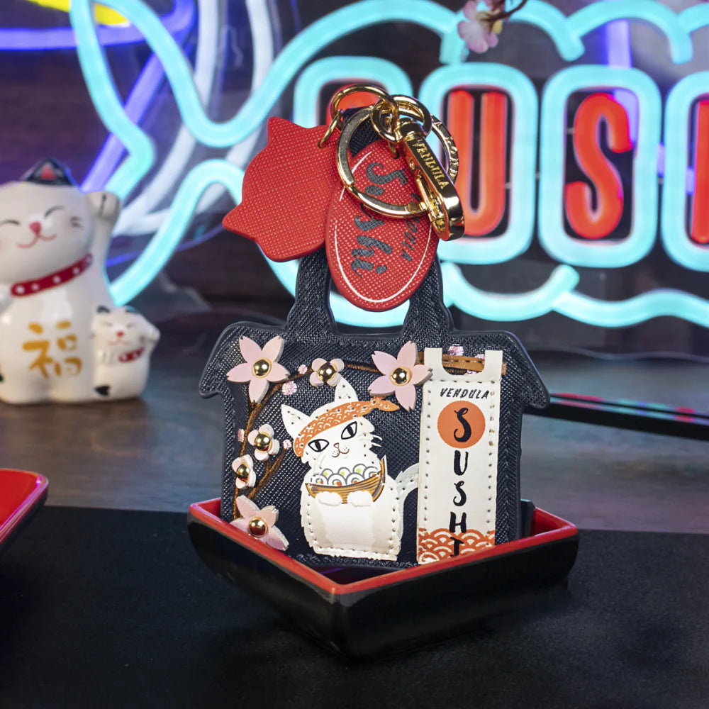 Your keys deserve a little flair too! The Vendula Sushi – Blue Edition Key Charm is a handbag-shaped treat crafted from vegan leather, featuring applique blossoms and our iconic smiling cat chef holding a sushi boat. With both a ring and clasp, you can attach it to your keys or clip it onto your Sushi bag. Cute, quirky and collectable—this charm is the finishing touch your collection’s been waiting for.