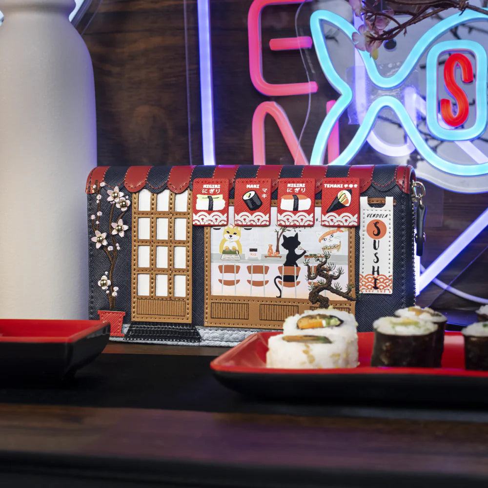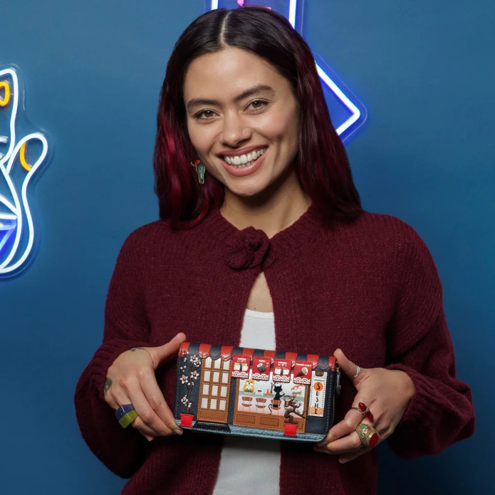 Pair your bag with a wallet that’s just as stylish! The Vendula Sushi – Blue Edition Large Ziparound Wallet is roomy enough to hold your cards, coins, notes, receipts—and maybe even a passport. Made from vegan leather and decorated with intricate printed and applique details, it mirrors the stunning shopfront artwork of your Sushi bag. If Tokyo’s calling, this wallet is your stylish ticket.