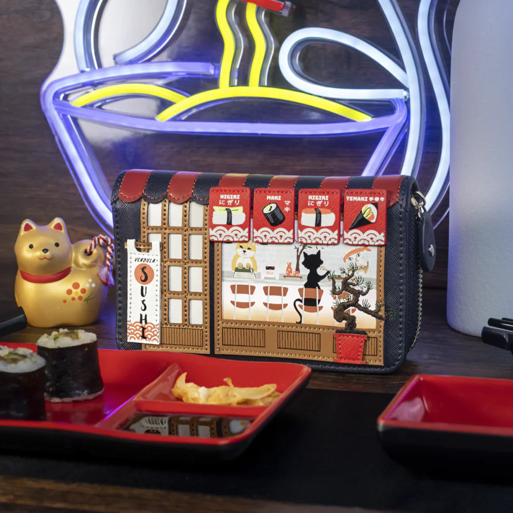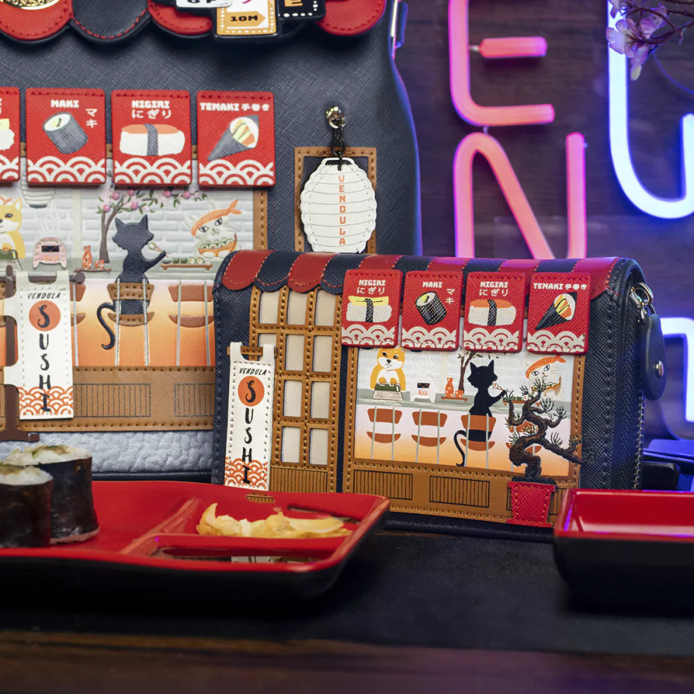 Raise a glass (of sake!) to the return of a fan favourite. The Vendula Sushi – Blue Edition Medium Ziparound Wallet features dedicated space for cards, coins, receipts, and notes, all secured with a sturdy ziparound closure. Crafted from vegan leather in deep navy and red hues, it showcases a sushi shopfront scene so realistic, you’ll be tempted to order off the menu. Matching your Sushi bag to perfection, this wallet is a treat for any true Vendulette.